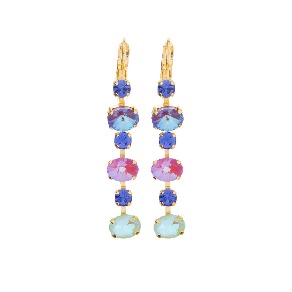 - These long beauties feature a combination of petite oval and round crystals.