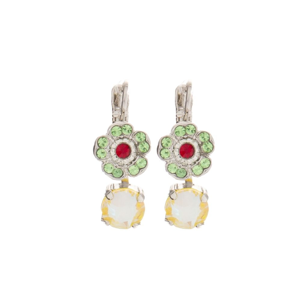 • Earrings feature a cute flower element and a small (6mm) crystal dangle below. Earrings are approximately 1/3 inch wide.